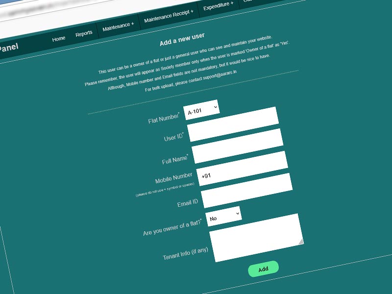 It is always hard to maintain maintenance book for a small housing society but with our products, neither you need to open your desktop nor a register book to write down the details. From your mobile phone, you just add a record who has paid for.